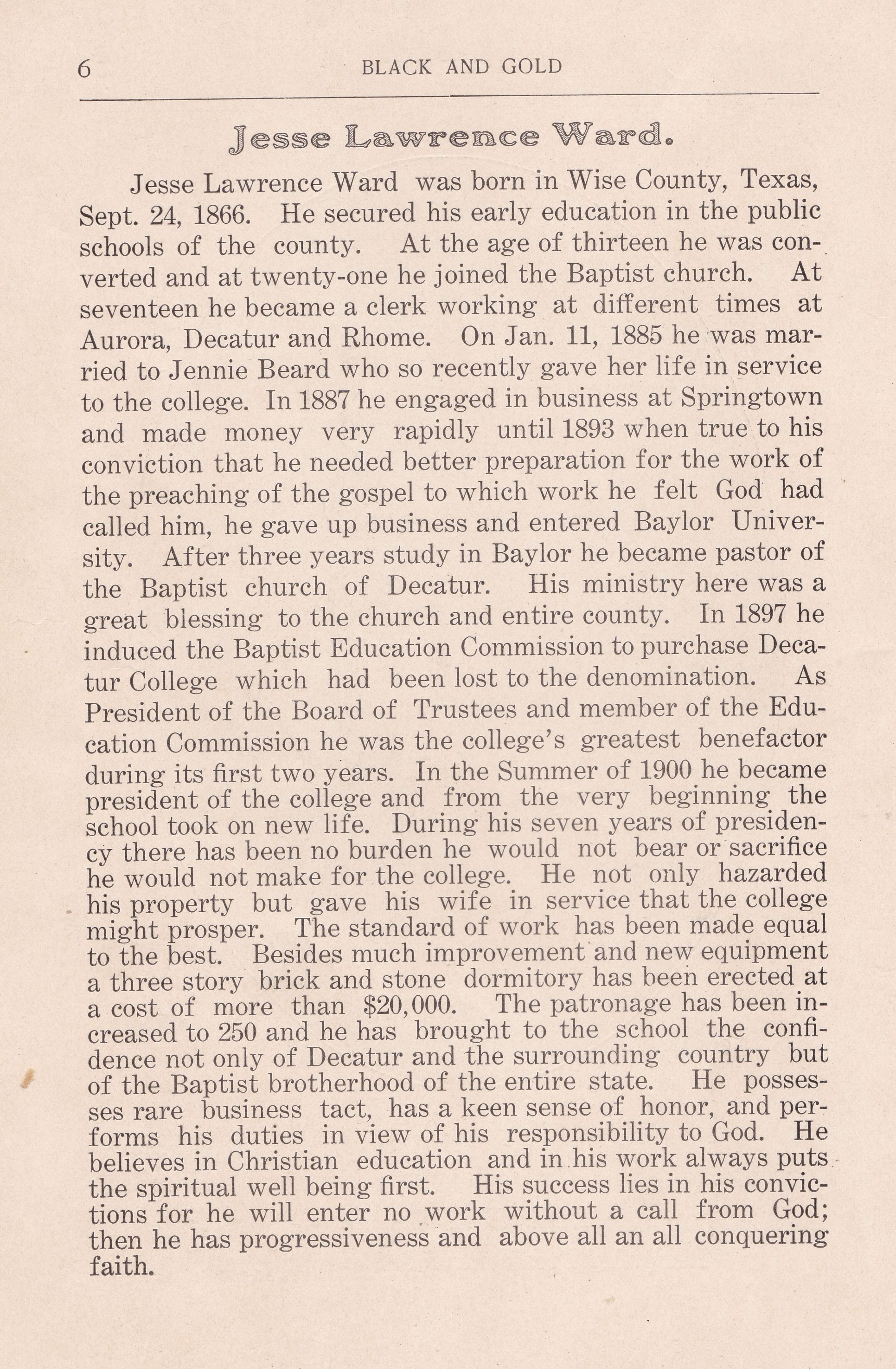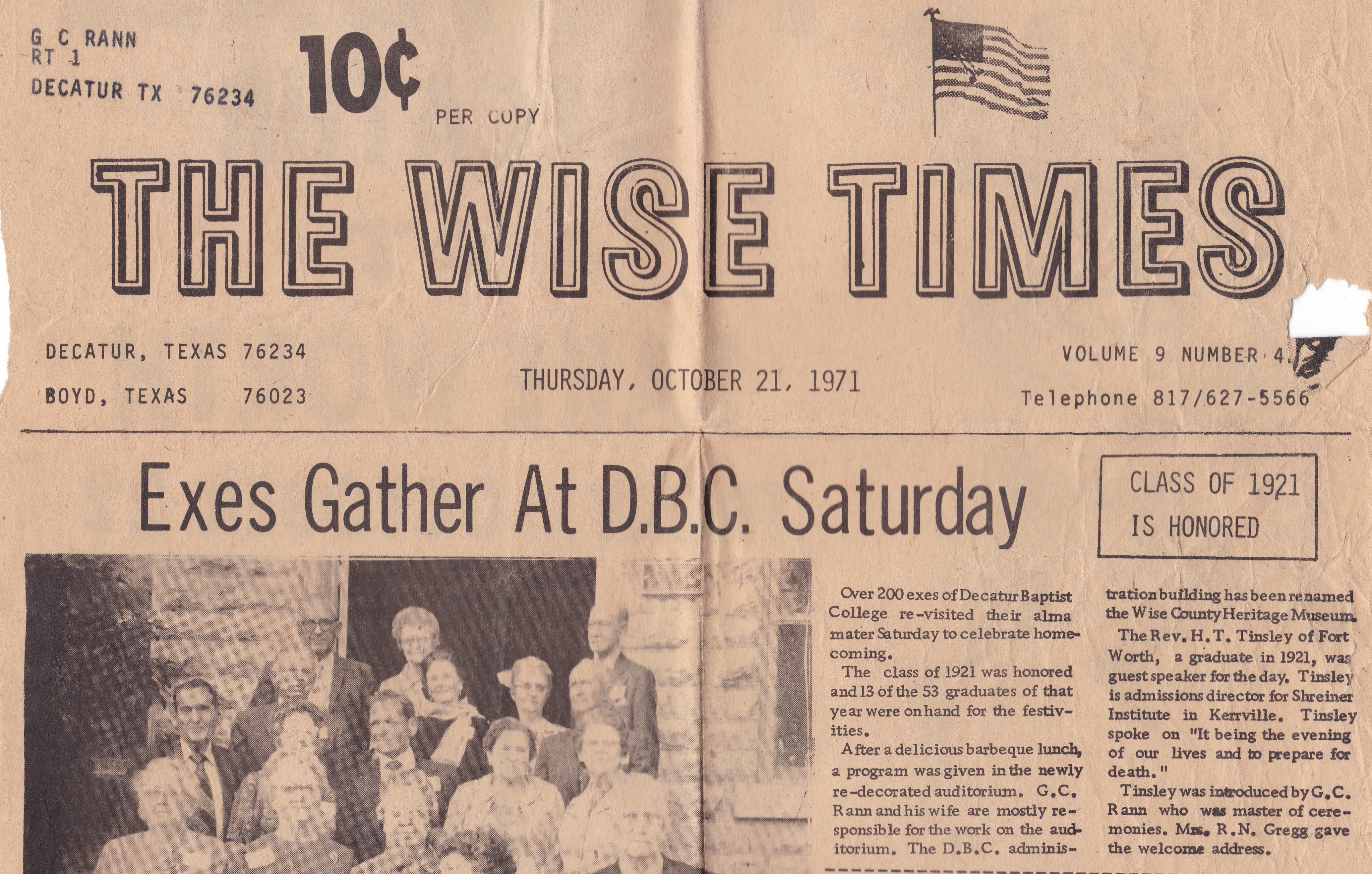 Museum = Picture or Paper on File at the Wise County Heritage Museum)
