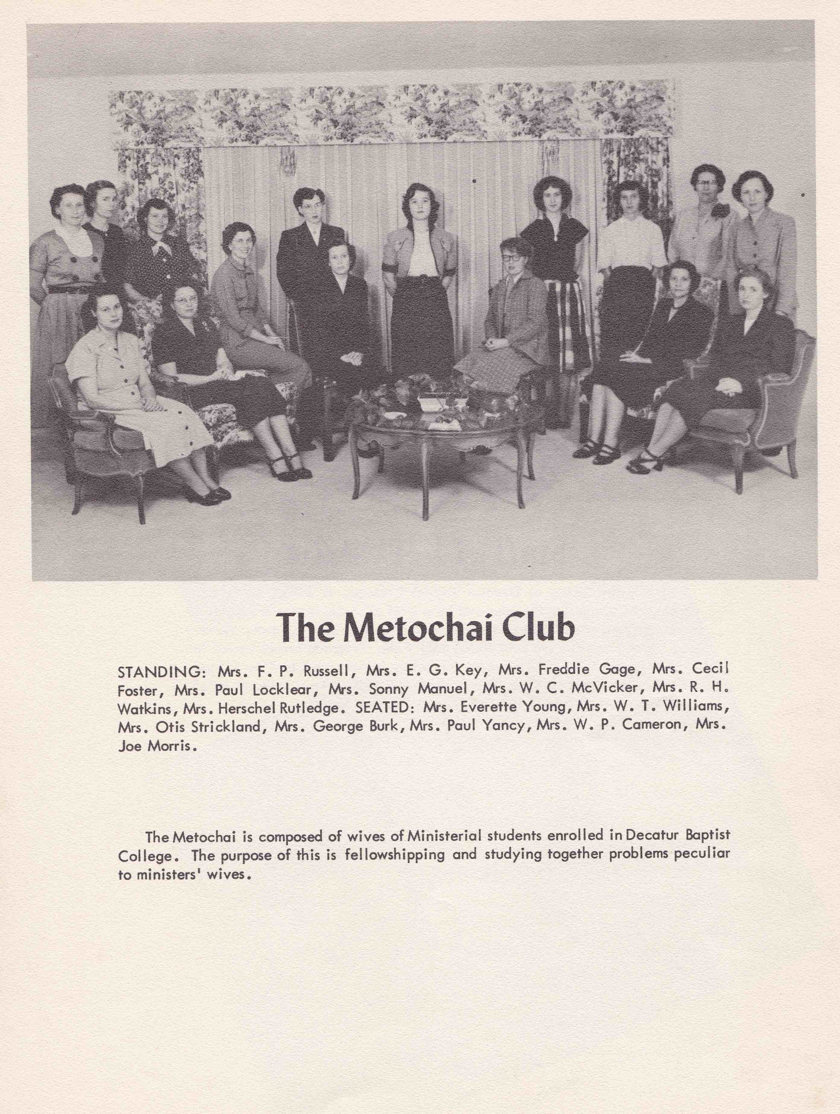 | Young, Everette, Mrs. | Metochai Club Group Picture | 1954/DBC1954-066.jpg |